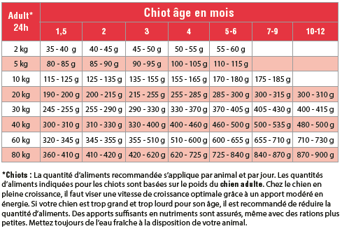 - La teneur adaptée en énergie et en protéines peut favoriser une croissance équilibrée du chiot