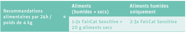 Les quantités sont données à titre indicatif et doivent être adaptées à l’état nutritionnel et à l’activité de votre animal. Veillez à ce que votre animal ait de l‘eau fraîche à disposition. Après ouverture, conserver au réfrigérateur entre 2 et 6 °C et servir à température ambiante dans les 24 heures.