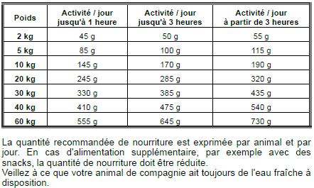 Énergie métabolisable: 15,4 MJ/kg / 3682 kcal/kg