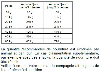 Énergie métabolisable: 15,6 MJ/kg / 3717 kcal/kg