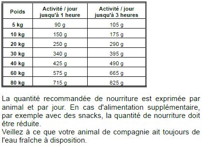 Énergie métabolisable: 14,9 MJ/kg / 3564 kcal/kg