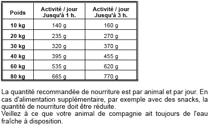 - Nourriture riche en énergie, avec vitamine E et L-carnitine, destinée aux chiens sportifs