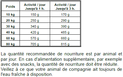- Nourriture pour chiens adultes, normalement actifs, de moyennes et grandes races
