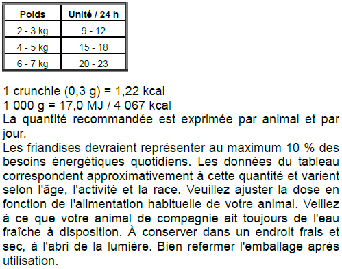 Ces friandises sont également des concentrés de bonnes choses, à chaque croustillante bouchée : de précieuses vitamines et de la taurine contribuent à la vitalité de votre félin, tandis que l'effet anti-boule de poils favorise son bien-être. Nous n'ajoutons aucun additif superflu comme le sucre, le soja, le lait, les colorants et les conservateurs dans no sfriandises !