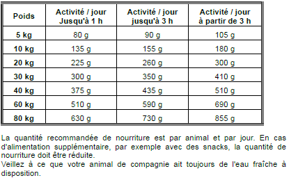 Constituants analytiques: Protéine 34 %, teneur en matières grasses 18 %, cellulose brute 2,5 %, cendres brutes 8,3 %, calcium 1,7 %, phosphore 1,1 %, sodium 0,45 %, magnésium 0,1 %, taurine 1000 mg.