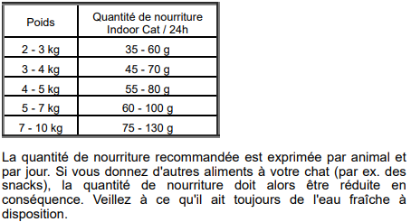 - Nourriture pour chats d'intérieur et chats castrés à partir d'1 an