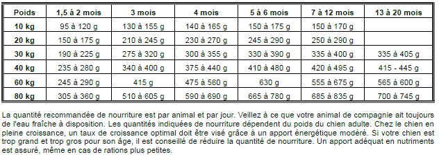 Énergie métabolisable: 16,5 MJ/kg / 3950 kcal/kg