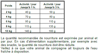 Énergie métabolisable: 16,2 MJ/kg / 3872 kcal/kg