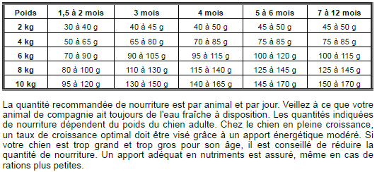 - Nourriture pour chiots à partir de 6 semaines