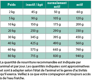 - La teneur énergétique modérée de la recette fait qu'elle convient particulièrement aux chiens normalement actifs.