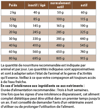 Aliment complet diététique pour chien adulte pour la réduction des intolérances aux ingrédients et aux nutriments.