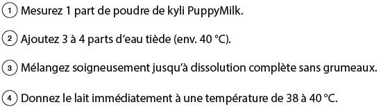 Il s‘agit d‘un aliment complémentaire pour les chiots allaités en cas de carence en lait maternel.