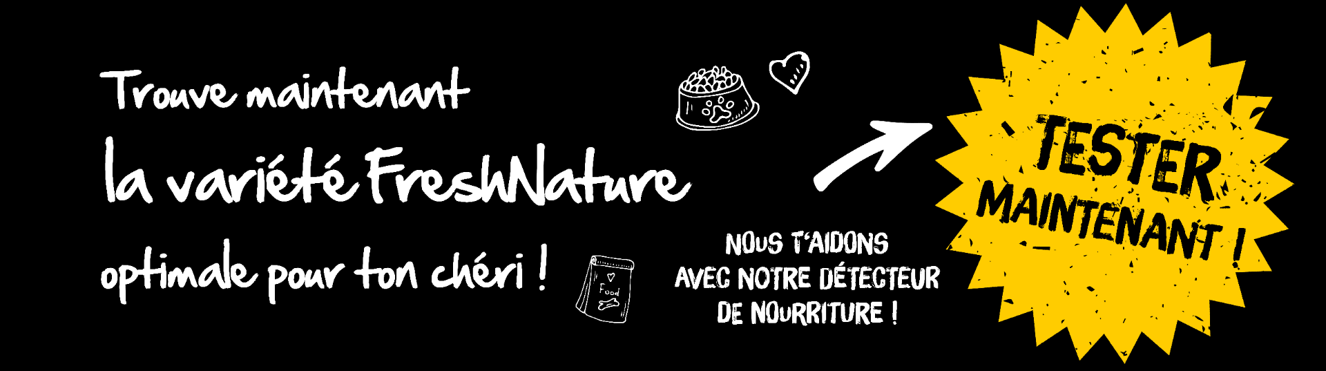 Jeune ou âgé, plein d’énergie ou tranquille – chaque chien mérite ce qu’il y a de meilleur. C’est pourquoi FreshNature ne contient que des ingrédients de la plus haute qualité. Car si ton chien est heureux, nous le sommes aussi !