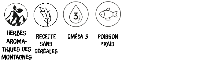 Deux de nos recettes intègrent, grâce à un procédé de fabrication spécial, de la viande ou du poisson frais – pour une expérience gustative intense, même pour les chiens les plus exigeants.