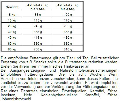 Umsetzbare Energie: 15,2 MJ/kg / 3643 kcal/kg