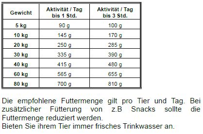 Umsetzbare Energie: 15,2 MJ/kg / 3630 kcal/kg