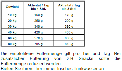 - Hundefutter für ausgewachsene, normal aktive Hunde mittlerer und grosser Rassen