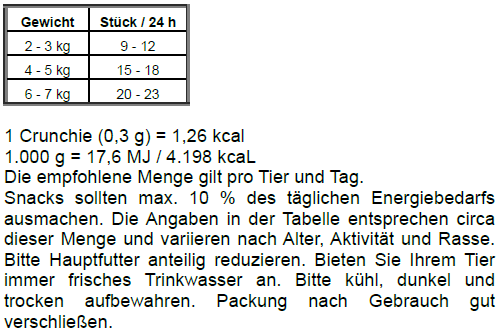 - Nur Gutes drin: Leckerlis ohne Zusatz von Zucker, Soja, Milch und Farb- sowie Konservierungsstoffen.