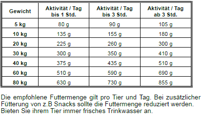 Zusammensetzung: Getrocknetes Geflügelprotein; getrocknete Süsskartoffel; Erbsenmehl; Geflügelfett; Rübenfaser; getrocknetes Fischprotein aus Meeresfischen (Lachs) 4 %; hydrolysiertes Geflügelprotein; Hefe; Apfelfaser; Mineralstoffe; Johannisbrotmehl; Kräuter, Früchte; gemahlene Chicorée-Wurzel (natürliche Quelle von Inulin); getrocknetes Protein der neuseeländischen Grünlippmuschel (Perna canaliculus).