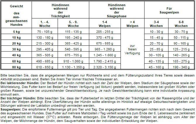 Alleinfuttermittel für tragende und säugende Hündinnen sowie heranwachsende Welpen bis zur 8. Lebenswoche.