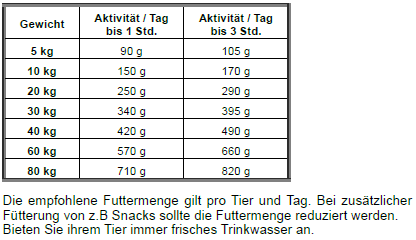 Umsetzbare Energie: 15 MJ/kg / 3588 kcal/kg